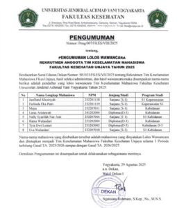 Selamat datang di Fakultas Kesehatan Universitas Jenderal Achmad Yani Yogyakarta, tempat lahirnya calon tenaga kesehatan yang profesional, berintegritas, dan berjiwa pengabdian.